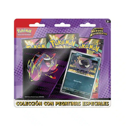 • 1 carta promo holográfica de Charmander o Gastly• 1 hoja con calcomanías para dispositivos• 3 sobres de refuerzo de Megaevolution Ascended Heroes